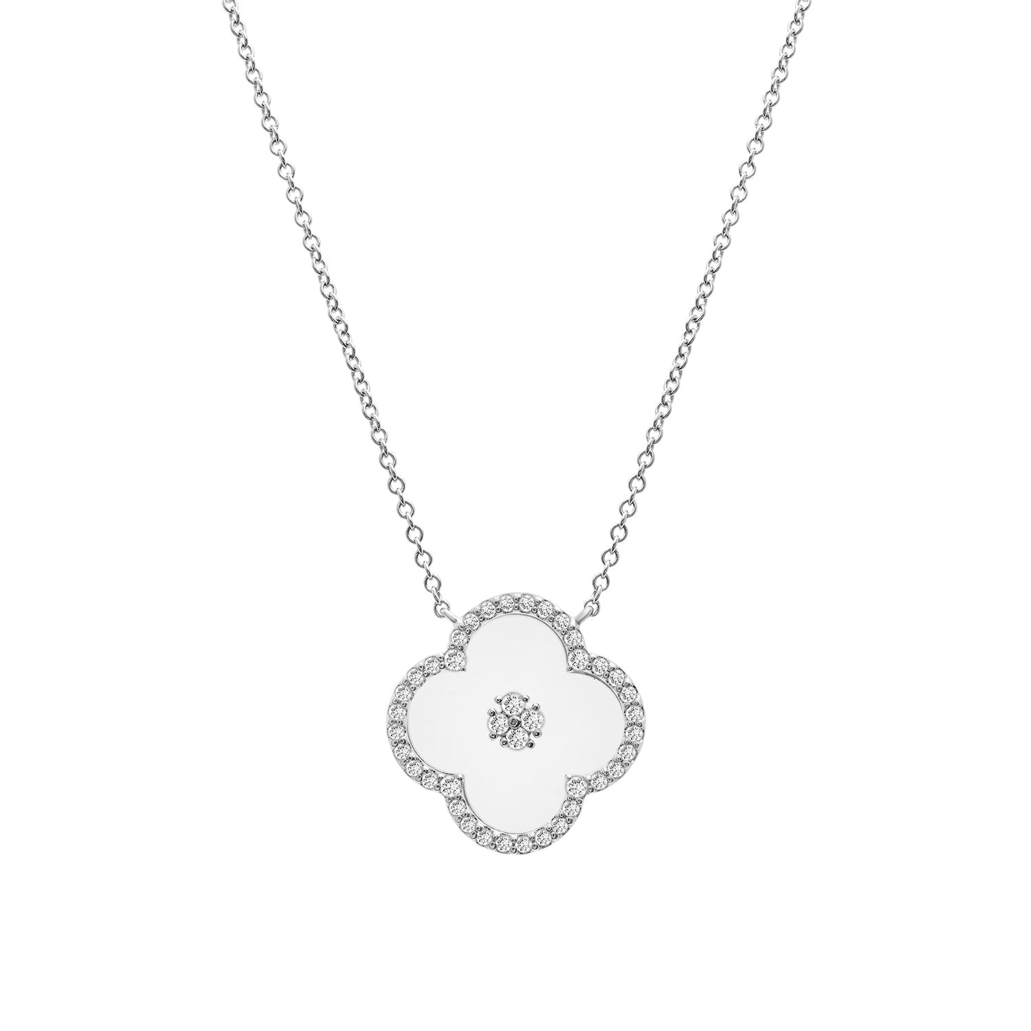 Bianca Diamond Clover Necklace - 14k White Gold